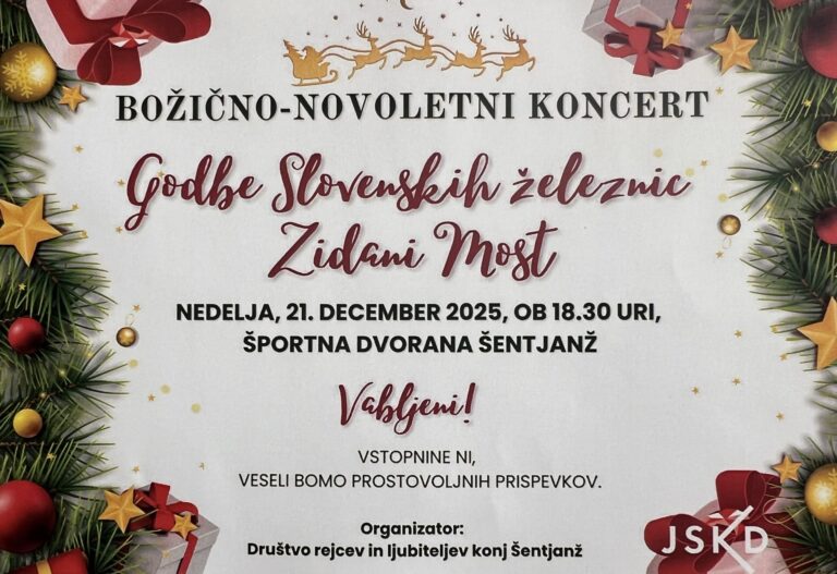 Vljudno vabljeni na koncert, ki bo 25. 12. 2025, ob 19. uri v športni dvorani v Šentjanžu. Vstop je prost!