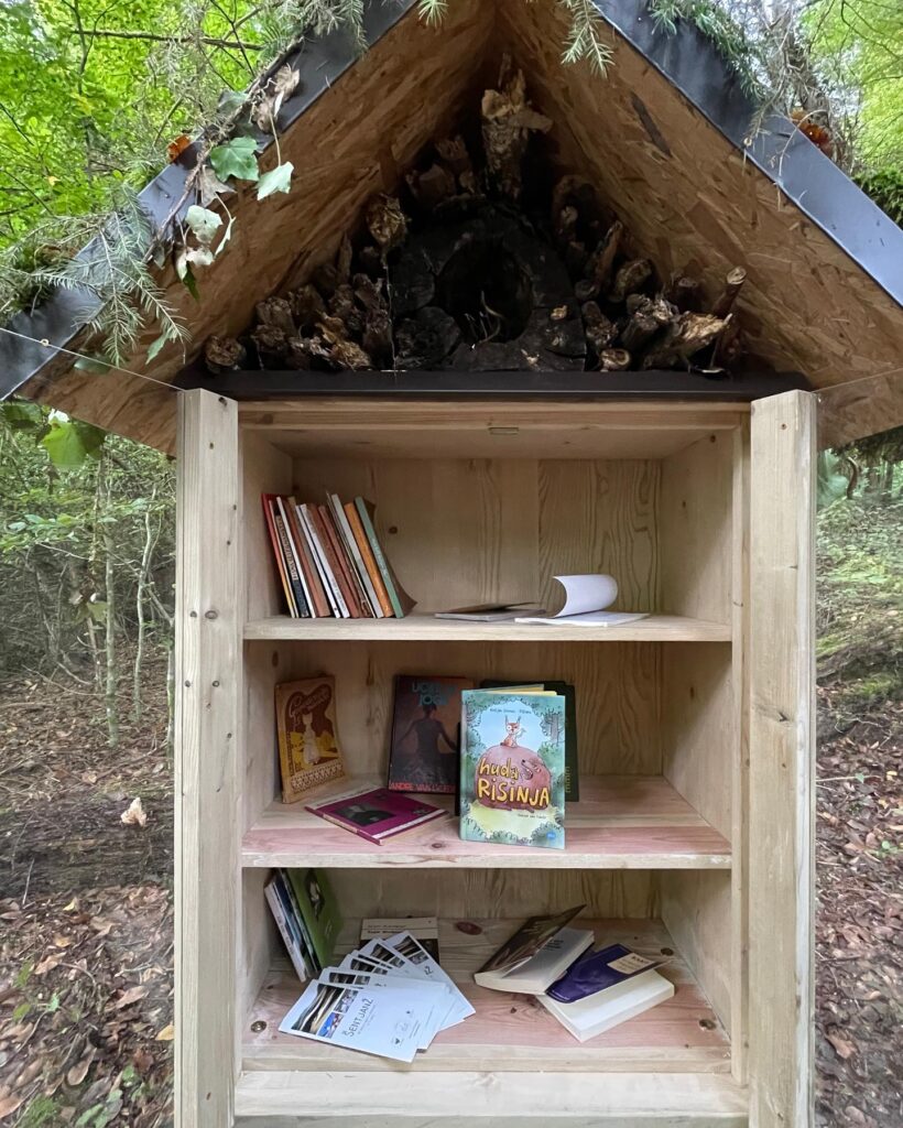 Septembrsko lepo vreme pa smo teden pred tem v Turističnem društvu Šentjanž izkoristili za otvoritev Knapčeve bukvarne pri Črni mlaki na Rudarski tematski poti Tk pav. V sredo smo v sklopu dogodka učence druge triade OŠ Milana Majcna Šentjanž povabili na poučno kulturno – naravoslovno obarvano popotovanje na Tk pav. Do Črne mlake jih je popeljal biolog Dušan Klenovšek, ki jih je med potjo opozarjal na naravne danosti gozda. Tako so med drugim lahko pobožali močerada, opazovali žabo, poizkusili zajčjo deteljo in vohali smrdečo gobo. Pri duglaziji je prisotne pozdravila in povedala svojo zgodbo gospa Duglazija, ki jo je odlično uprizorila Cveta Jazbec. Pot se je nadaljevala do Črne mlake, kjer pa je vse skupaj pričakal slovenski pisatelj, komik, igralec, raper in prevajalec Boštjan Gorenc – Pižama, ki je nepozabno predstavil svojo Pozabljivo kapico ter Rusico in grdino, ki so zaživele v neokrnjenem gozdnem okolju. Po navdušujoči pripovedi je gost pomagal otvoriti Knapčevo bukvarno sredi gozda, kamor so učenci vložili tudi svoje knjige, ki so jih prinesli s seboj. Na ta način je rudarska tematska pot Tk pav zaživela v novi, do sedaj še neodkriti vlogi. Vabljeni na meditacijo in prebiranje k Črni mlaki, kjer si lahko knjigo v Knapčevi bukvarni tudi izposodite oz. jo nadomestite z drugo, ki jo prinesete od doma.