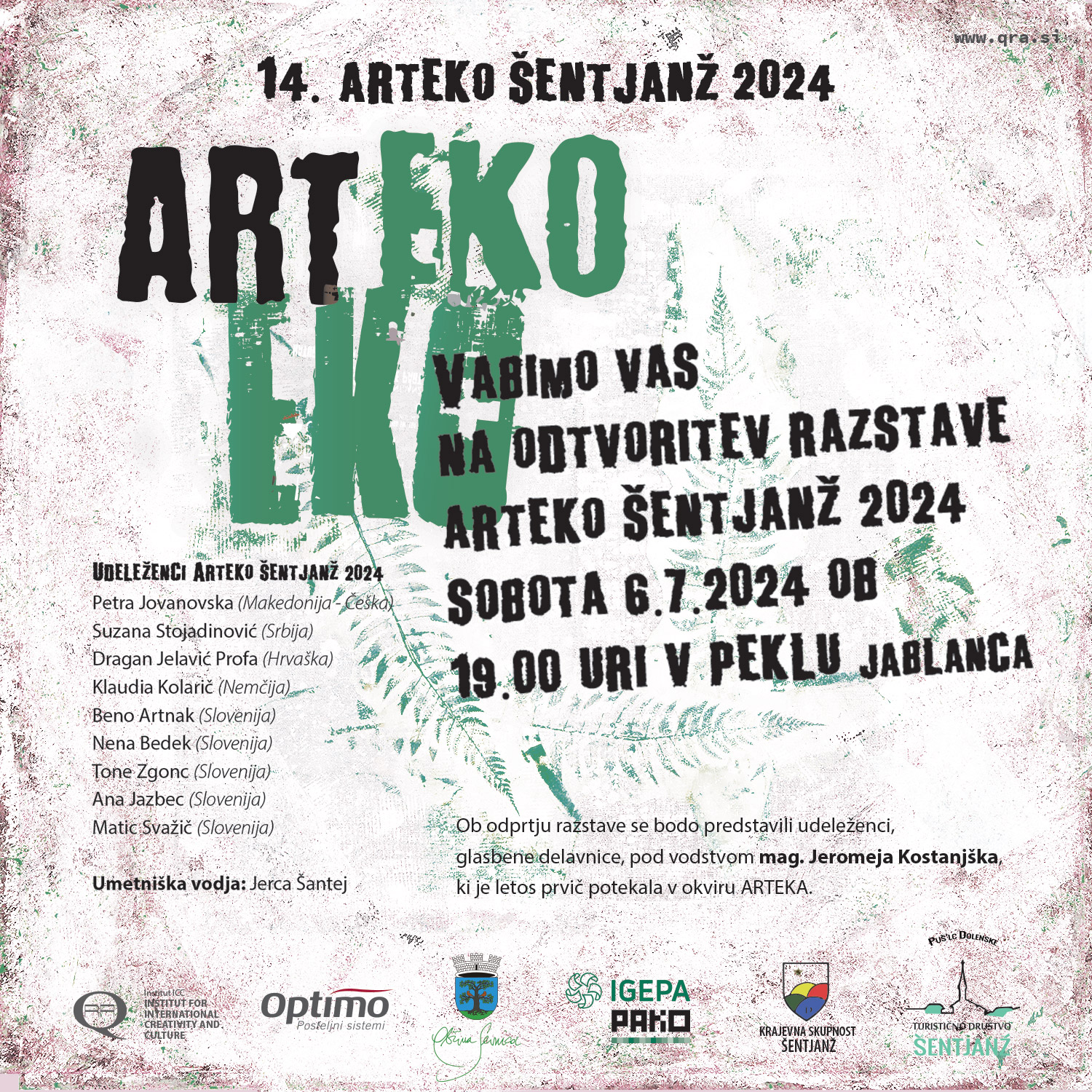 14. ARTEKO ŠENTJANŽ 20241 julija, 2024ObvestilaTuristično društvoVabimo vas na odtvoritev razstave Arteko Šentjanž 2024.Sobota 6. 7. 2024 ob 19.00 uri v Peklu Jablanca.Več si lahko preberete na letaku… Prejšnji Prispevek MK Junci v spremstvu Kluba ljubiteljev starih vozil Mirenske doline - Hrast Tržišče 2024 in spremstvo 18. maratona kolesarskega kluba dolenjska balanca po mirnski dolini Naslednji Prispevek Vabilo na 27. gasilske igre brez meja na Velikem Cirniku