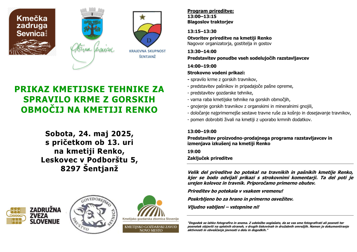 Želimo si, da dogodek služi tudi kot priložnost za druženje, izmenjavo mnenj in izkušenj ter spoznavanje kmetijske mehanizacije in opreme, primerne za gorske kmetije.