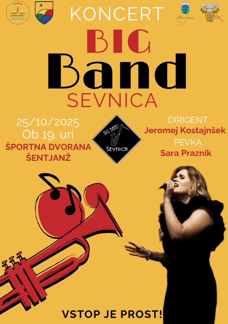 VABILO NA KONCERT BIG BAND SEVNICA V ŠENTJANŽU7 oktobra, 2025ObjaveTuristično društvoKrajevna skupnostVljudno vabljeni na koncert, ki bo 25. 12. 2025, ob 19. uri v športni dvorani v Šentjanžu. Vstop je prost! Prejšnji Prispevek ŠENTJANŠKA TRŽNICA 2025 Naslednji Prispevek ŠENTJANŠKA TRŽNICA Z OTVORITVIJO RAZSTAVE ARTEKO ZADNJO SEPTEMBRSKO NEDELJO