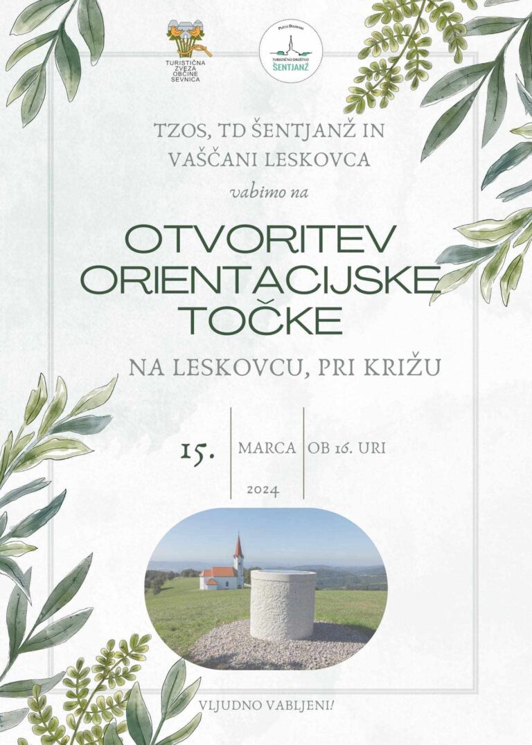 na otvoritev orientacijske točke na Leskovcu. Otvoritev bo 15. marca 2024 ob 16. uri. Vljudno vabljeni!